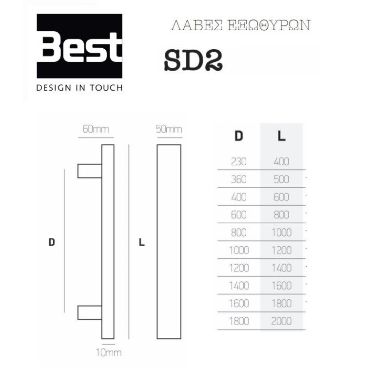 - Λαβή εξωθύρας, σε 8 διαστάσεις, από 40εκ. έως 160εκ. και 200εκ.