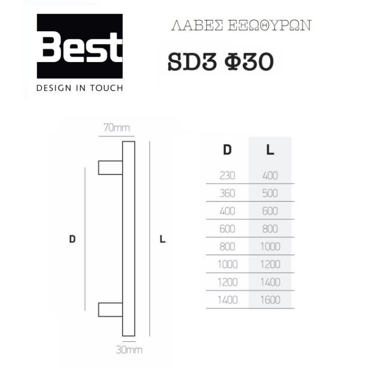 - Λαβή εξωθύρας, σε 8 διαστάσεις, από 40εκ. έως 160εκ. και 200εκ.