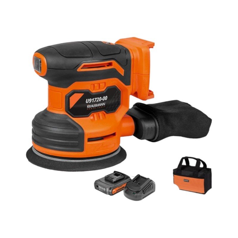 Σετ Τριβείο Έκκεντρο Περιστροφικό Ø125 Επαναφορτιζόμενo 20V Krausmann +Μπαταρία 2.0Ah + Φορτιστή + Τσάντα μεταφοράς (U91720-12S)
