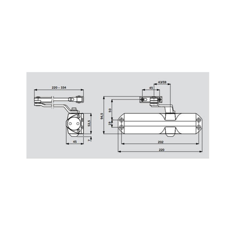 Μηχανισμός επαναφοράς πόρτας, Dorma TS68,  ρυθμιζόμενης δύναμης 2-4.
