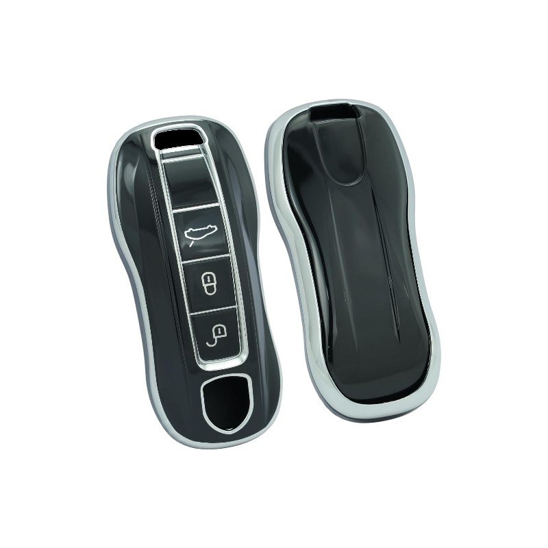 Θήκη Προστασίας σε μαύρο-νικέλ φινίρισμα για αναδιπλούμενα κλειδιά αυτοκινήτου Porsche με 3 κουμπιά.