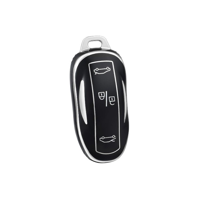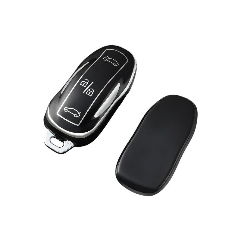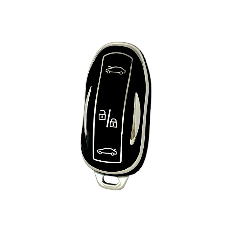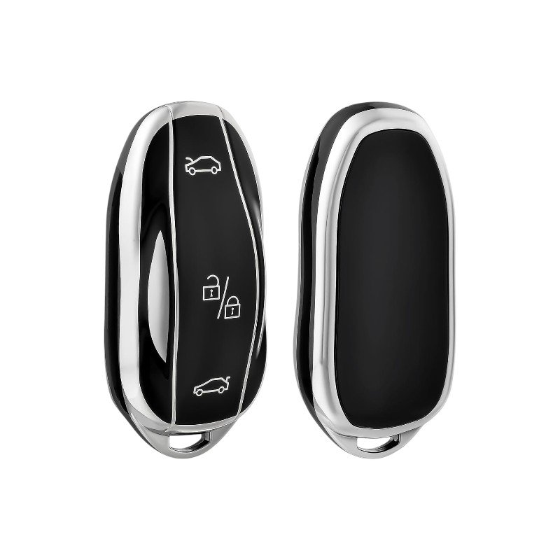 Θήκη Προστασίας σε μαύρο-νικέλ φινίρισμα για αναδιπλούμενα κλειδιά αυτοκινήτου Tesla με 3 κουμπιά.