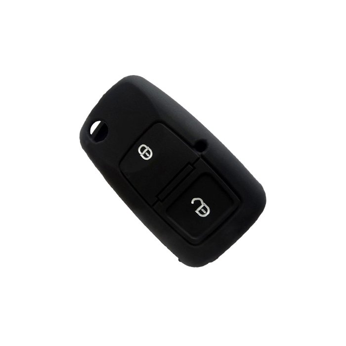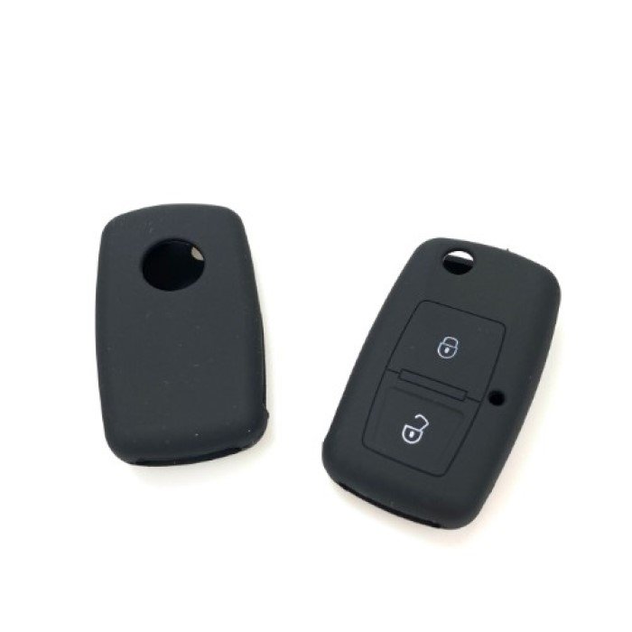 Θήκη σιλικόνης μαύρη για αναδιπλούμενα κλειδιά αυτοκινήτου Volkswagen/Seat/Skoda με 2 κουμπιά.