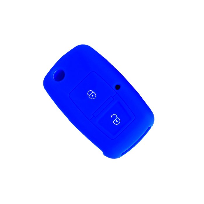 Θήκη σιλικόνης μπλε για αναδιπλούμενα κλειδιά αυτοκινήτου Volkswagen/Seat/Skoda με 2 κουμπιά.
