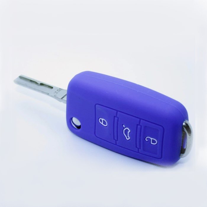 Θήκη σιλικόνης μπλε για αναδιπλούμενα κλειδιά αυτοκινήτου Volkswagen/Seat/Skoda με 3 κουμπιά.
