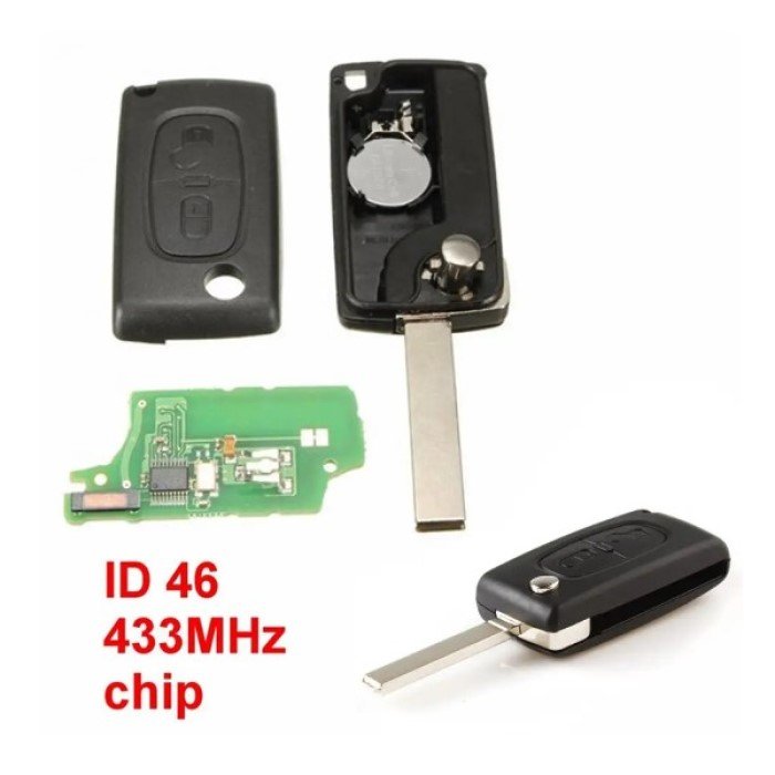 Τηλεχειριστήριο Peugeot με 2 Κουμπιά Αναδιπλούμενο, με λάμα HU83, συχνότητα 433mhz ASK και ID46 chip για Peugeot 207, 307 (NEO) KAI 308