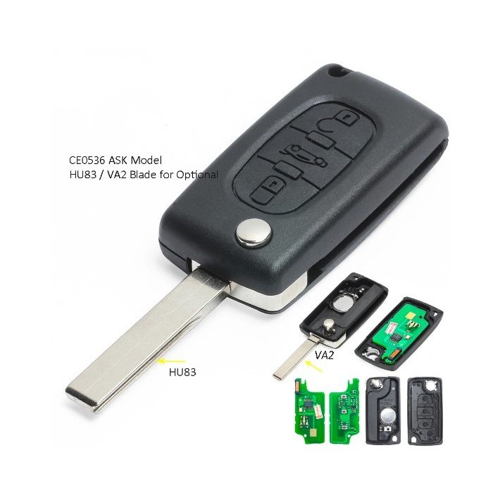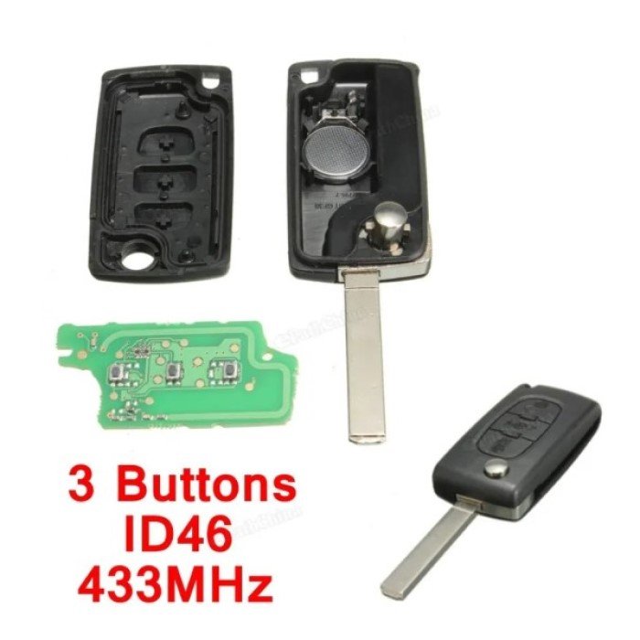 Τηλεχειριστήριο Peugeot με 3 Κουμπιά Αναδιπλούμενο και ID46 chip για Peugeot 207, 307 (NEO) KAI 308 | (CE0536 TYPE)
