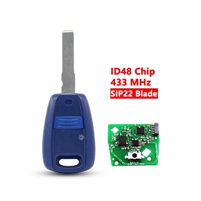 Τηλεχειριστήριο αυτοκινήτου τύπου Fiat, με ID48 Chip, 433mhz συχνότητα, SIP22 λάμα και 1 κουμπί, κατάλληλο για διάφορα μοντέλα.