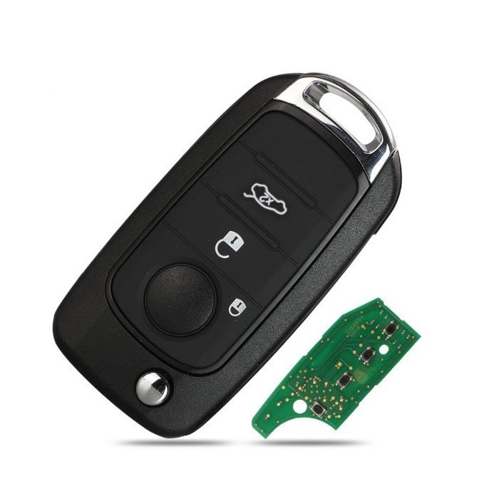 Τηλεχειριστήριο αναδιπλούμενο αυτοκινήτου τύπου Fiat, με MEGAMOS AES MQB48 Chip, SIP22 λάμα και 3 κουμπιά, κατάλληλο για διάφορα μοντέλα.