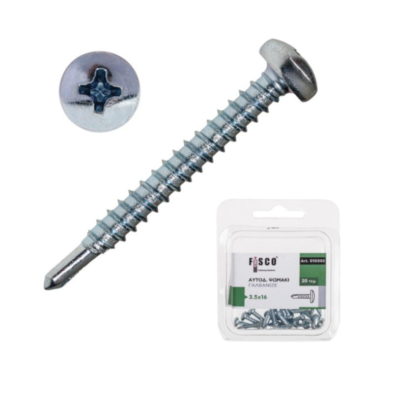 Βίδες Αυτοδιάτρητες Ψωμάκι Γαλβανιζέ (0100010) 4.2x38mm 12τεμ Fisco