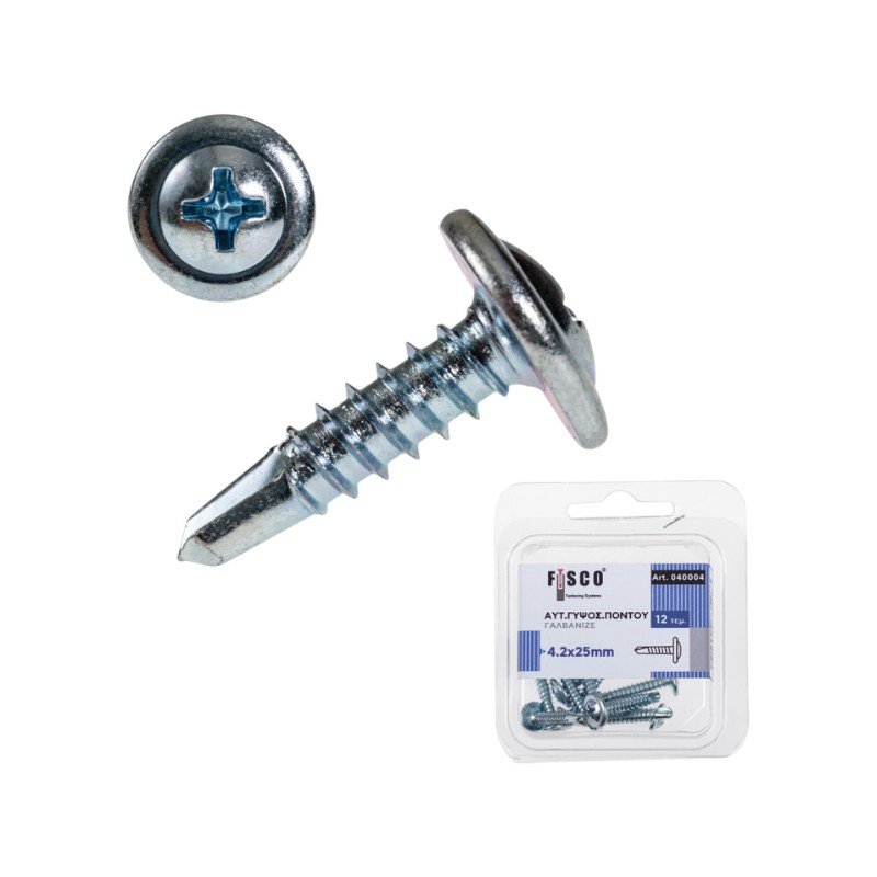 Βίδες Πόντου Αυτοδιάτρητη Γυψοσανίδας Γαλβανιζέ σε blister (040003) 4.2x19mm 15τεμ σε Συσκευασία Blister Fisco
